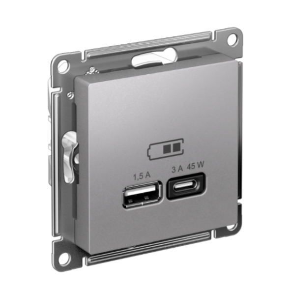 ATLASDESIGN USB РОЗЕТКА A + тип-C 45Вт высокоскор.заряд. QC, PD, механизм, АЛЮМИНИЙ