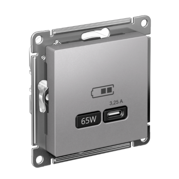 ATLASDESIGN USB РОЗЕТКА тип-С 65Вт высокоскор.заряд. QC, PD, механизм, АЛЮМИНИЙ