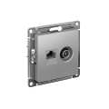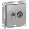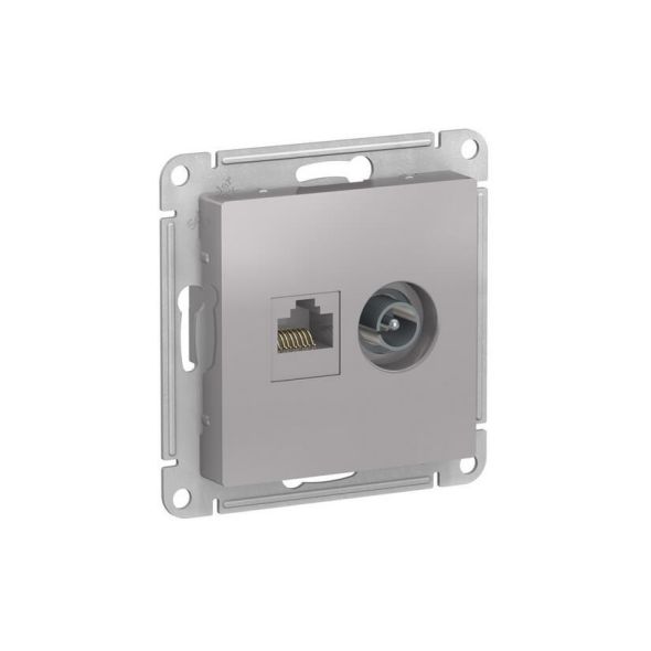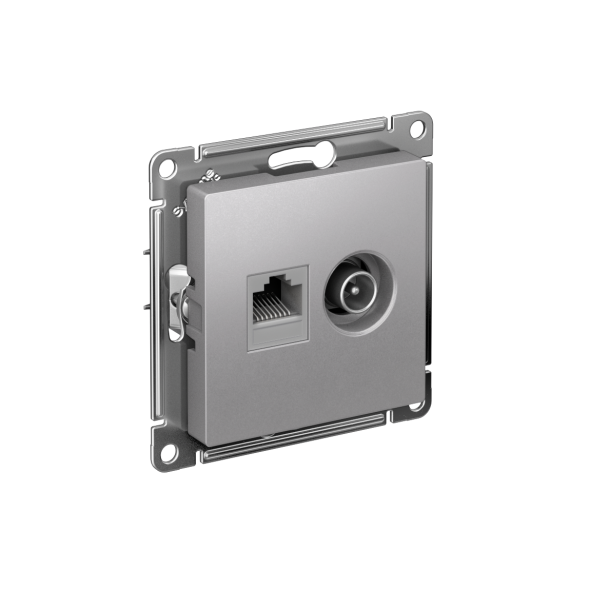 Механизм Systeme Electric (ранее Schneider Electric) серии AtlasDesign в цвете алюминий двойной розетки разъёмами RJ45 категория 5е и TV предназначен для удобного и быстрого подключения вашего компьютера и телевизора к соответствующим сетям.- Лицевые детали из качественного ABS-пластика, устойчивого к царапинам и УФ-излучению.- Усиленные прямые монтажные лапки для лучшей фиксации механизма в монтажной коробке.