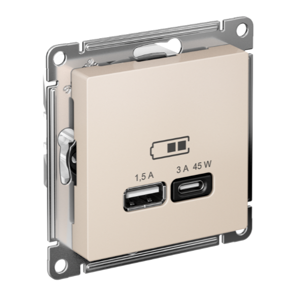 ATLASDESIGN USB РОЗЕТКА A + тип-C 45Вт высокоскор.заряд. QC, PD, механизм, БЕЖЕВЫЙ