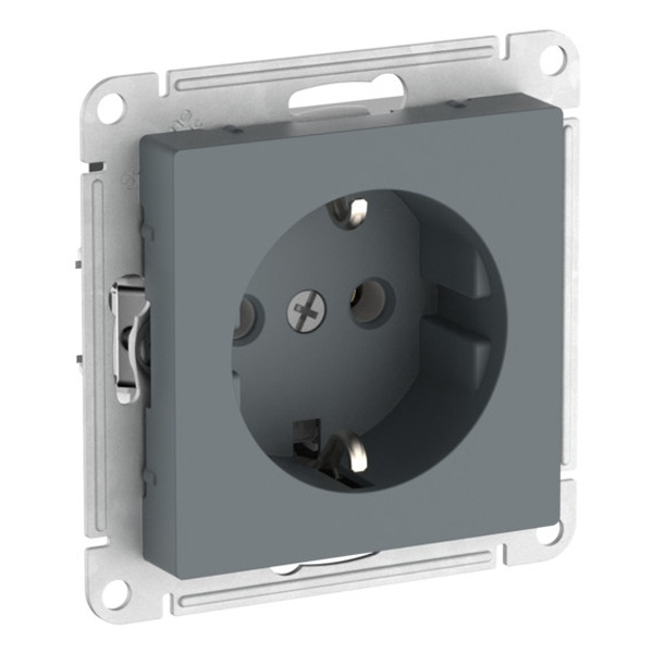 Механизм Systeme Electric (ранее Schneider Electric) серии AtlasDesign в цвете грифель розетки одинарной с заземлением и шторками подходит для сетей 250 В, на ток 16 А.- Заземляющий контакт обеспечивает дополнительную защиту от удара электрическим током. При наличии заземления электрический потенциал уходит в землю, защищая человека.- Лицевые детали из качественного ABS-пластика, устойчивого к царапинам и УФ-излучению.- Усиленные прямые монтажные лапки для лучшей фиксации механизма в монтажной коробке.