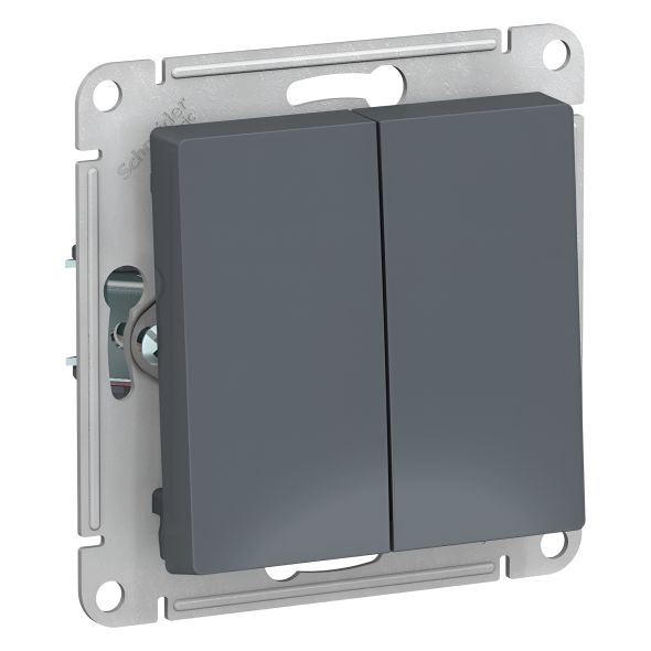 Механизм выключателя 2-клавишного Systeme Electric (ранее Schneider Electric) серии AtlasDesign в цвете грифель подходит для сетей 250 В, на ток 10 А.- Двухклавишный выключатель позволяет управлять двумя источниками света с одной точки.- Лицевые детали из качественного ABS-пластика, устойчивого к царапинам и УФ-излучению.- Усиленные прямые монтажные лапки для лучшей фиксации механизма в монтажной коробке.