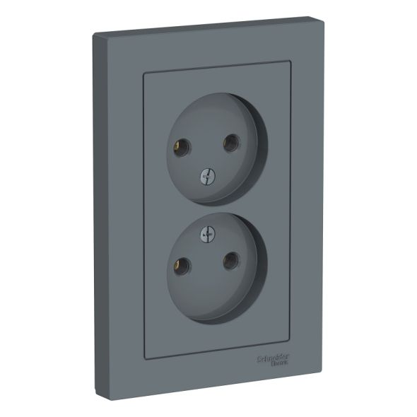 Розетка двойная Systeme Electric (ранее Schneider Electric) серии AtlasDesign (в сборе, цвет грифель) без заземления и без шторок подходит для сетей 250 В, на ток 16 А.- Лицевые детали из качественного ABS-пластика, устойчивого к царапинам и УФ-излучению.- Двойная розетка позволяет подключить два устройства в одном месте.- Изделие поставляется в комплекте с рамкой того же цвета.- Усиленные прямые монтажные лапки для лучшей фиксации механизма в монтажной коробке.