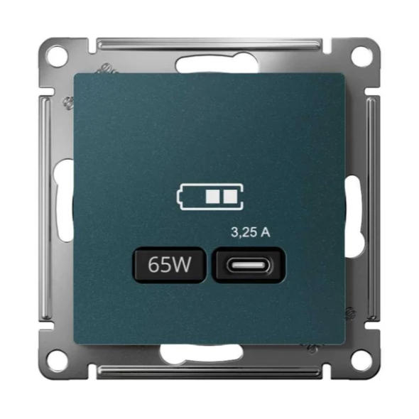 ATLASDESIGN USB РОЗЕТКА тип-С 65Вт высокоскор.заряд. QC, PD, механизм, ИЗУМРУД