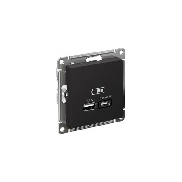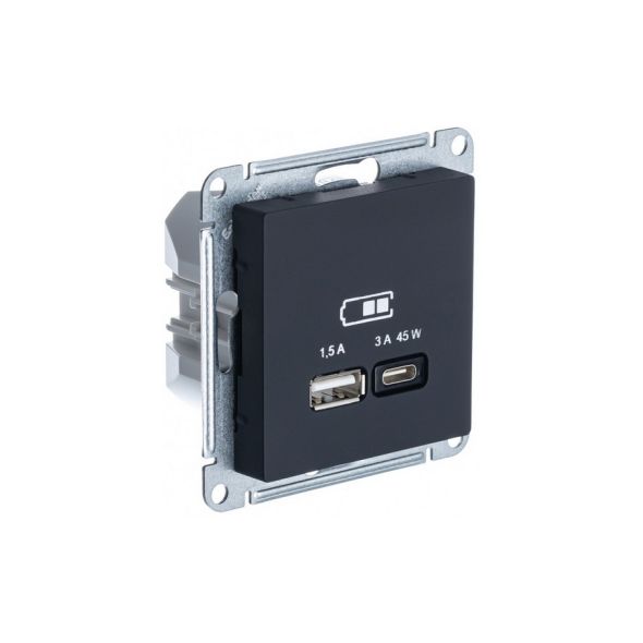 ATLASDESIGN USB РОЗЕТКА A + тип-C 45Вт высокоскор.заряд. QC, PD, механизм, КАРБОН