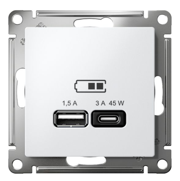 ATLASDESIGN USB РОЗЕТКА A + тип-C 45Вт высокоскор.заряд. QC, PD, механизм, ЛОТОС