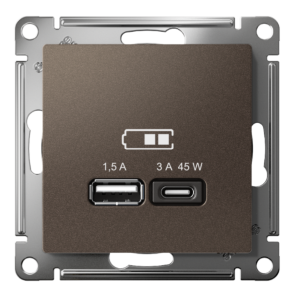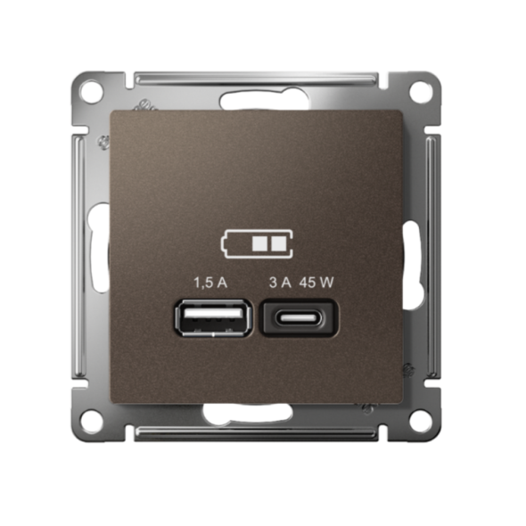 ATLASDESIGN USB РОЗЕТКА A + тип-C 45Вт высокоскор.заряд. QC, PD, механизм, МОККО