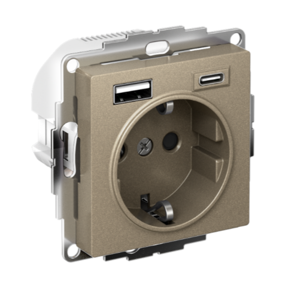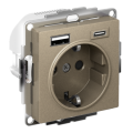 Розетка силовая Systeme Electric (ранее Schneider Electric) серии AtlasDesign 16А (цвет шампань) с заземлением и шторками с розеткой USB, с двумя разъемами тип А и тип С. Розетка совмещает в себе сразу 3 функции в одном изделии. Удобное и современное решение для дома, офиса и других помещений.- Лицевые детали из качественного ABS-пластика, устойчивого к царапинам и УФ-излучению.- Заземляющий контакт обеспечивает дополнительную защиту от удара электрическим током.- Шторки обеспечивают дополнительную безопасность в доме, где находятся дети.- Одно устройство позволяет как подключить бытовые приборы, так и зарядить мобильные устройства.