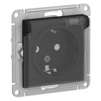 Механизм розетки 1-м СП AtlasDesign Aqua 16А IP44 с заземл. защ. шторки с прозр. крышкой карбон SchE ATN441046