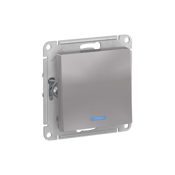 ATLASDESIGN 1-клавишный ПЕРЕКЛЮЧАТЕЛЬ с подсветкой, сх.6а, 10АХ, мех., быстрозажим. клем., АЛЮМИНИЙ