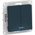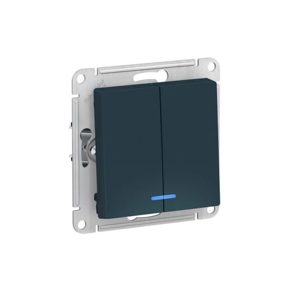 ATLASDESIGN 2-клавишный ВЫКЛЮЧАТЕЛЬ с подсветкой, сх.5а, 10АХ, мех., быстрозажим. клем., ИЗУМРУД
