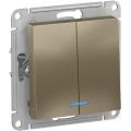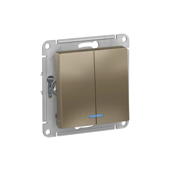 ATLASDESIGN 2-клавишный ВЫКЛЮЧАТЕЛЬ с подсветкой, сх.5а, 10АХ, мех., быстрозажим. клем., ШАМПАНЬ
