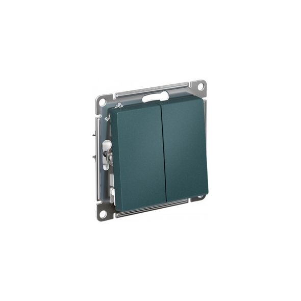 ATLASDESIGN 2-клавишный ВЫКЛЮЧАТЕЛЬ, сх.5, 10АХ, мех., быстрозажим. клем., ИЗУМРУД