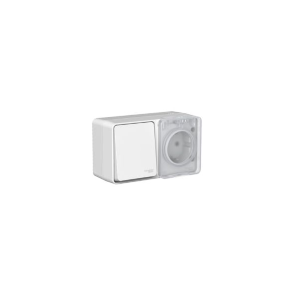 ATLASDESIGN PROFI IP54 О/У БЛОК: РОЗЕТКА с заземл. со шт., 16А, ВЫКЛЮЧАТЕЛЬ 1-клав., 10АХ, СЕРЫЙ
