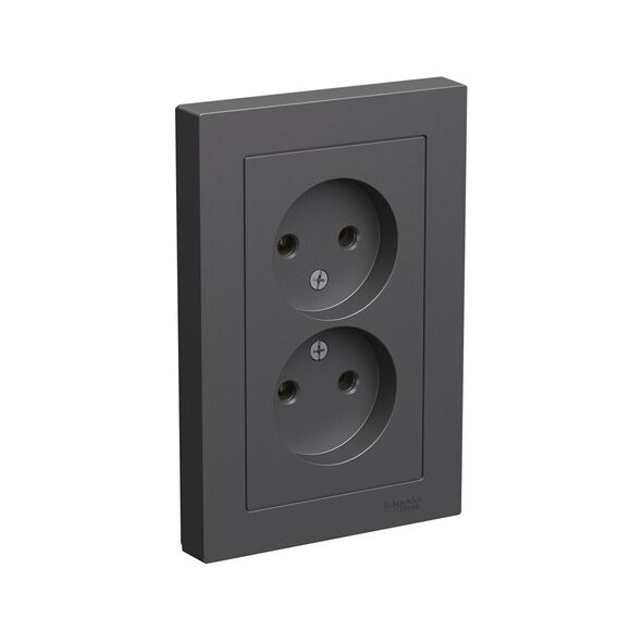 ATLASDESIGN РОЗЕТКА двойная без заземления, 16А, в сборе, БАЗАЛЬТ