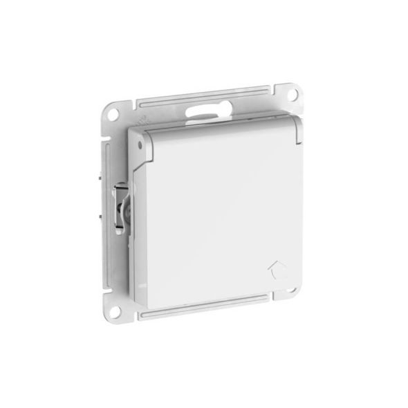 ATLASDESIGN РОЗЕТКА с заземлением со шторками с крышкой,16А,IP20, мех.,быстрозажим. клем., БЕЛЫЙ