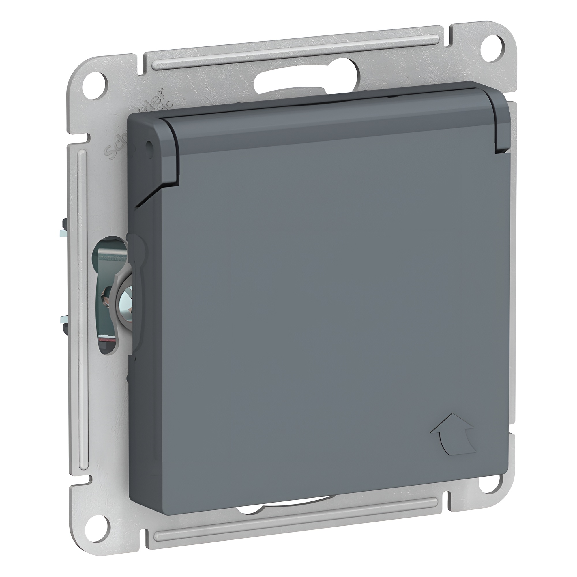 ATLASDESIGN РОЗЕТКА с заземлением со шторками с крышкой,16А,IP20, мех.,быстрозажим. клем., ГРИФЕЛЬ