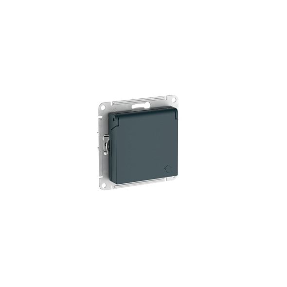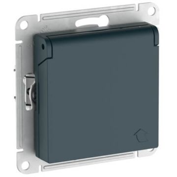 ATLASDESIGN РОЗЕТКА с заземлением со шторками с крышкой,16А,IP20, мех.,быстрозажим. клем., ИЗУМРУД