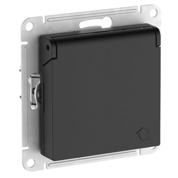 ATLASDESIGN РОЗЕТКА с заземлением со шторками с крышкой,16А,IP20, мех.,быстрозажим. клем., КАРБОН