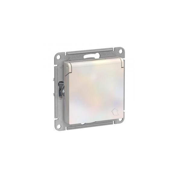 ATLASDESIGN РОЗЕТКА с заземлением со шторками с крышкой,16А,IP20, мех.,быстрозажим. клем., ЖЕМЧУГ