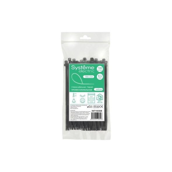 MULTISET Стяжка кабельная нейлоновая 150х3.6 ЧЁРНАЯ (100шт) в пакете с замком ЗИП-ЛОК